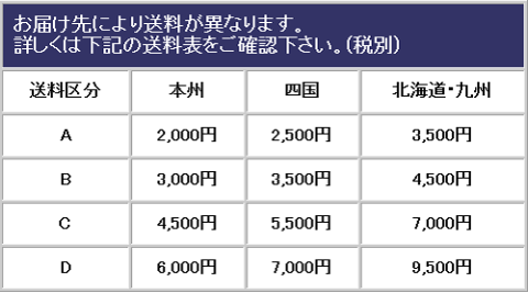 ● 遠隔地、島嶼部など一部地域につきましては別途追加送料が掛かる場合がございますので予めご了承下さい。